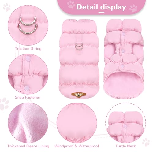 Winter Warm Dog Jacket for Small Medium Dogs Cat Cold Weather Coats with Harness Paded Dogs Fleece Vest Waterproof Windproof Dog Snow Jacket Pet Puppy Clothes (Pink,M)