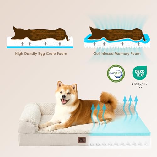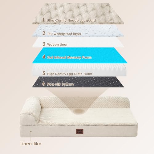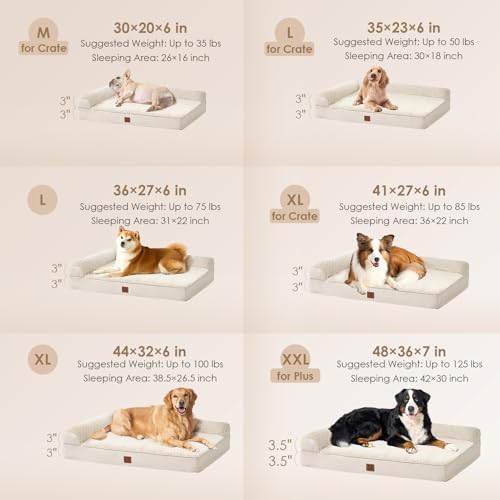 EHEYCIGA Memory Foam Dog Bed Large Sized Dogs, Pet Bed for Large Dog for Crate with Waterproof Liner, Pet Couch Bed Orthopedic with Washable Removable Cover, 35x23x6 Inches, Beige