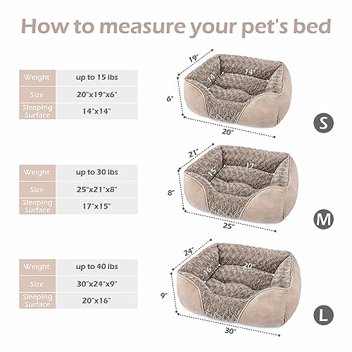 🐶Size Details: Small dog bed for Small dogs up to 15lbs, the outer size is 20″x19″x6″; Medium dog bed for Medium dogs up to 30lbs, the outer size is 25″x21″x8″; Large dog bed for Large dogs up to 40lbs, the outer size is 30″x24″x9″; X-Large dog bed for Jumbo dogs up to 60lbs, the outer size is 35″x25″x9″; XXL dog bed for Large dogs up to 80lbs, the outer size is 42″x30″x10″; Please be sure to confirm the size.