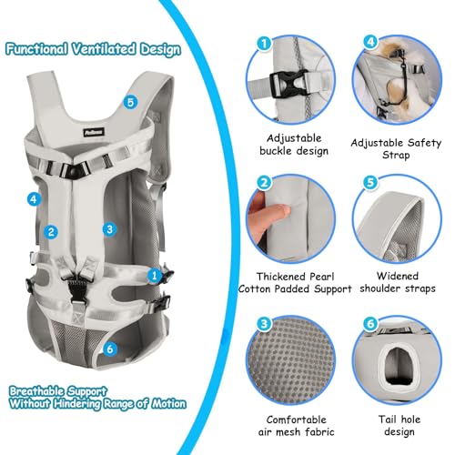 PetBonus Pet Front Dog Carrier Backpacks, Adjustable Pet Backpack, Legs Out Easy-fit Puppy Chest Carrier for Medium Small Dogs, Hands Free for Hiking, Cycling (Grey, XL)