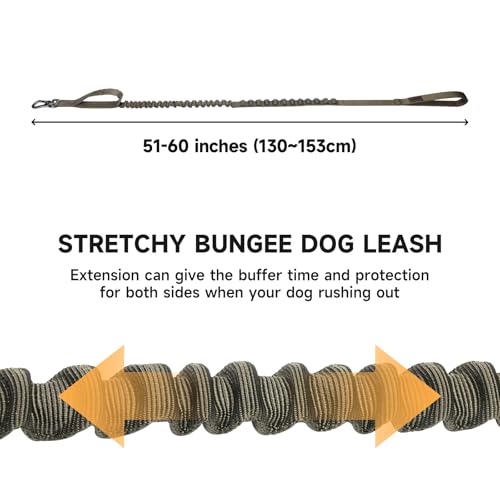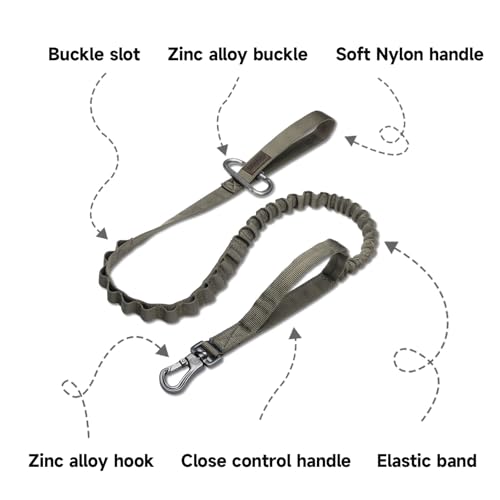 Excellent Elite Spanker Tactical Bungee Dog Leash Military Adjustable Dog Leash Quick Release Elastic Leads Rope with 2 Control Handle(Ranger Green)