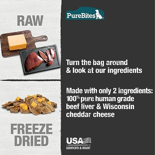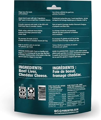Treat your pal to the tender and nutritious PureBites freeze-dried dog treats. The ingredients are 100% pure and natural. Made by using a delicate freeze-drying process, which removes the water, but preserves the raw nutrients, aroma, flavor, texture and freshness your dog craves. They�re naturally high in protein and only ten calories per treat. And because they only include one ingredient, they�re great for dogs on a limited-ingredient Diet and dogs with food sensitivities. Proudly sourced and made in the USA, you can feel good about giving these usda-raised beef liver treats to your furry best friend.