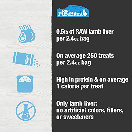 PureBites Mini Lamb Freeze Dried Dog Treats, 1 Ingredient, Made in USA, 2.4oz