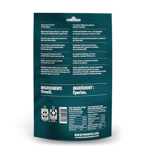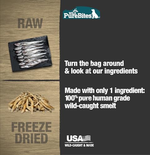PureBites Wild Smelt Freeze Dried Dog Treats, 1 Ingredient, Made in USA, 2.1oz