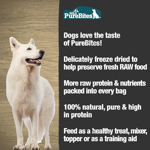 Dogs love the taste of PureBites! 100% natural, high in protein, low in calories (only 3 calories per average treat) and nothing added like colors, fillers, or sweeteners