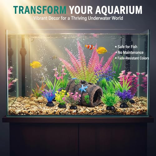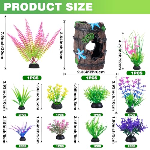 Complete Set with Diverse Styles:This value pack includes 1 Broken Barrel Decor and 11 aquarium plants,offering a total of 12 different styles. With heights varying from 2 to 6.5 inches, it is perfectly suited for 2.5-gallon or larger fish tanks.