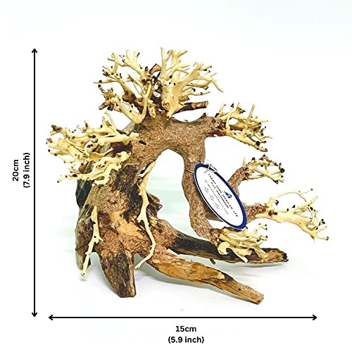 Bonsai Driftwood Aquarium Tree (8in H x 6in L), Handcrafted Fish Tank Decoration | Easy to Install Driftwood Bonsai for Fish Tank | Decor Aquascape Wood (Bonsai Tree)