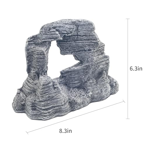 【Unique Texture, Color & Shape】Size: 8.3*6.3*3.3in. The aquarium stone color is naturally gray, black and white, and the color will be darker in humid environments. The hollow design in the middle allows small fish to freely shuttle through your landscaping, adding a sense of beauty and reality to your creation.