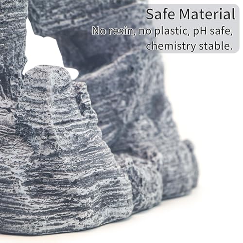 【Safety】No resin, no plastic, chemistry stable. Our aquarium rocks are carved from quality materials that do not contain plastics or nasties and do not affect the water quality, do not change the pH or water chemistry, safe for your fish and live plants.