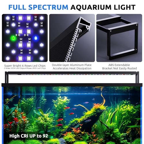 Premium Aquarium LED Light – 6 rows of high-performance LEDs (2×5054 + 4×2835) deliver vibrant, flicker-free illumination for stunning aquatic displays day and night