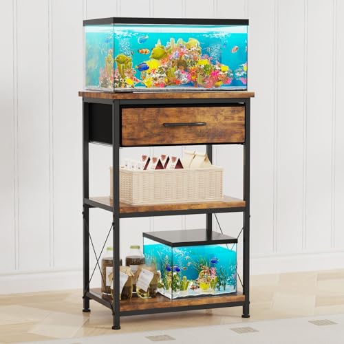 5-10 Gallon Fish Tank Stand, Height Adjustable Metal Aquarium Stand with Storage Drawers for Fish Tank Accessories Storage, Perfect for Turtle Tank, Reptile Terrarium, Brown