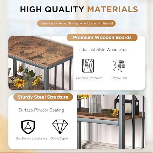 【Perfect for Any Setting】Whether in your living room, bedroom, office, classroom, or lab, the 20-29 gallon aquarium stand adds elegance and practicality. The unique industrial wood grain finish adds a touch of sophistication, making it a must-have for fish enthusiasts or decorators aiming for a stylish and organized space