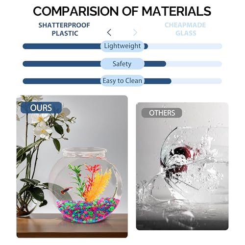 Made of shatterproof plastic, unlike glass fish bowls that can shatter when dropped this durable bowl puts to rest any concerns about possible accidents and glass all over