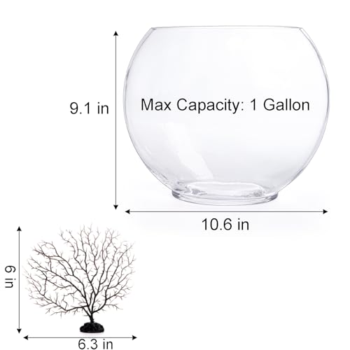 Dimension: This oblate glass fish bowl with flat design (10.6″ L x 3.7″ W x 9.1″ H, 4mm in thickness), max capacity 1gallon, and you can add 0.5-0.7gallon water into the bowl, provides a healthy and spacious environment for your betta fish, small shrimp.