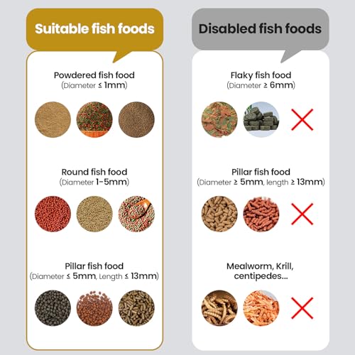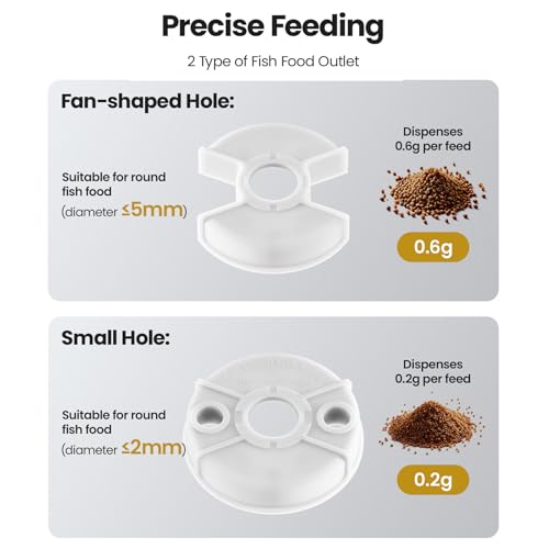 Precision Feeding with Customizable Portions:Enjoy personalized feeding schedules with this automatic fish feeder, offering precise portions of 0.2-0.6 grams per serving. Accommodates various species, including betta fish and turtle food. Ensure peace of mind during absences with real-time verification and social media integration for a reliable and precise auto feeder experience.
