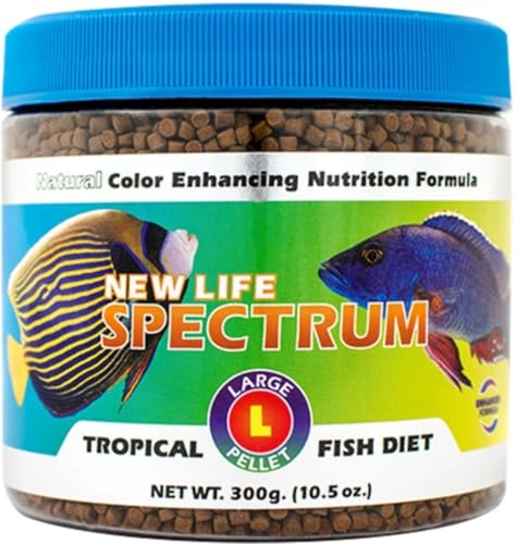 The 300 g New Life Spectrum 3 mm fish formula is made for tropical fish in either freshwater or reef environments. Made without any artificial flavours, colours or preservatives, the food boasts natural ingredients such as krill, ginger, algae and seaweeds that aid in the digestive process. The ingredients in these pellets boost the immune system of the inhabitants of your tank, as well as providing them with the essential vitamins and minerals to dramatically enhance both the colour and growth of your fish. At 3 mm per pellet, New Life Spectrum is perfect for medium to large sized fish, and will sink to the bottom of the tank where some of the more shy or bottom dwelling fish will be able to enjoy the taste and the benefits of this product.