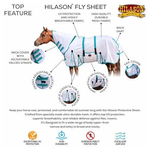 Feature: This HILASON Horse Fly Sheet Is Crafted From Durable Poly/Nylon Mesh For Maximum Airflow While Keeping Bugs And Insects Away. It Offers Uv Protection And Includes A Double Front Buckle, Adjustable Leg Straps, And Secure Neck And Belly Closures. Designed For Comfort And Function, It Also Features Multiple Gussets To Allow Your Horse Freedom Of Movement. Horse Fly Sheet Uv Protection Is Ideal For Protection And Performance During Warm Weather.