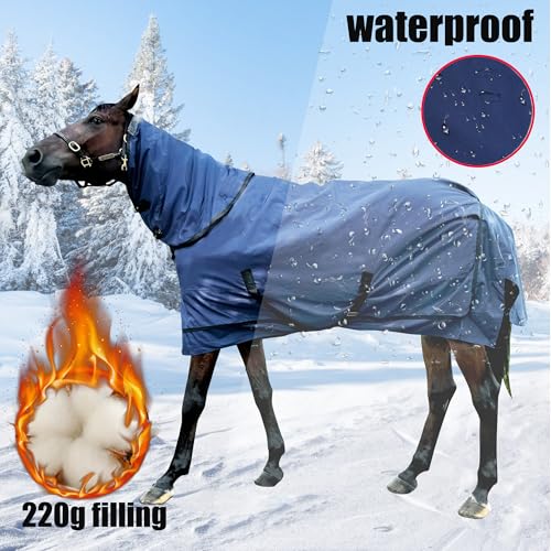 Horse Care Blanket, Turnout Blanket for Horses with Detachable Neck Cover, 1200 D 220g Filling Thicken Medium Weight Horses Rug, Waterproof Blanket for Horse (US 78 in(EU 145cm))