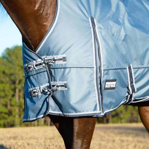Jeffers Poplar Head Refuge 1200 Denier Turnout Blanket w/High Neck, Hamilton Blue, 75″– Waterproof & Breathable Horse Blanket, 240g Insulation, Adjustable Fit for Comfort & Safe Use, Durable Design