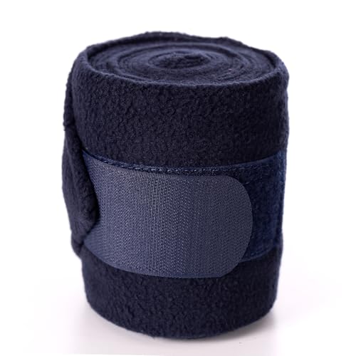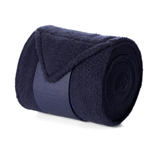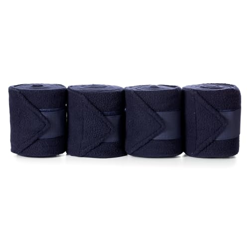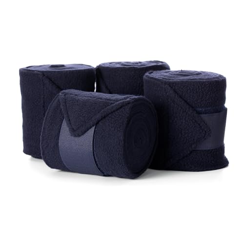 Equinavia Luna 9′ Fleece Polo Wraps, Set of 4 Horse Leg Bandages with Storage Bag | Black – One Size – Navy – One Size