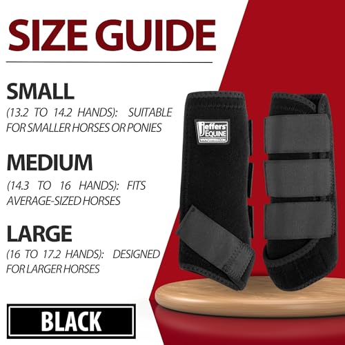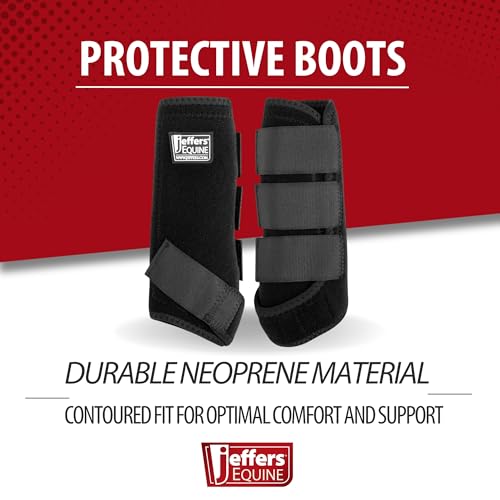 Jeffers Equine Protective Horse Boots 1 Pair Black, Safe Neoprene Leg Guards & Comfortable Fit, Durable Strap Closures, Front & Hind Support, Equestrian Accessories for Travel & Riding – Medium