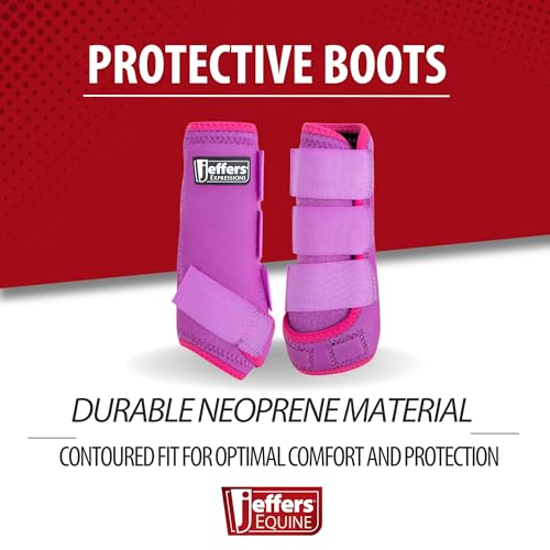 Jeffers Expression Neon Horse Boots 1 Pair – Purple & Pink, Breathable Neoprene, Secure Strap Closures, Durable Premium Protection for Jump Training & Trail Riding – Front & Hind, Large Size