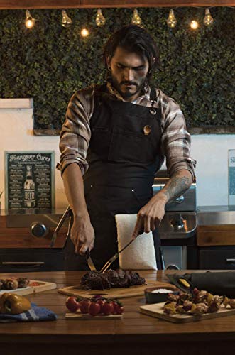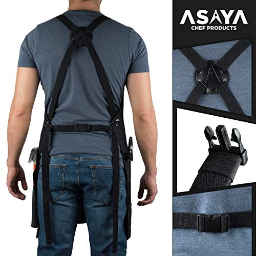 Asaya Chef and BBQ Apron with Bottle Opener and Hand Towel – 10oz Cotton Canvas, Stainless Steel Hardware – Cross Back Straps