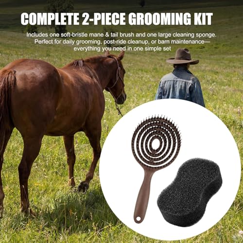 COMPLETE 2-PIECE GROOMING KIT – Includes one soft-bristle mane & tail brush and one large cleaning sponge. Perfect for daily grooming, post-ride cleanup, or barn maintenance—everything you need in one simple set.