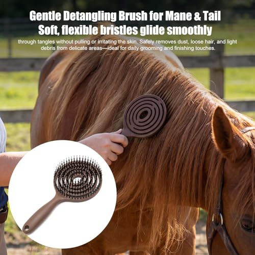 GENTLE DETANGLING BRUSH FOR MANE & TAIL – Features flexible, soft bristles that glide through tangles without pulling or irritating the horse’s skin. Safely removes dust, loose hair from delicate areas like the mane, tail.