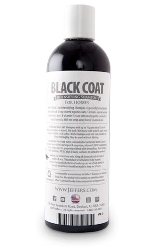 Jeffers Equine Black Coat Shampoo for Horses – Enhances Black & Bay Coats, Soap & Detergent Free, Coconut Oil Formula with Aloe & Vitamin E – Deep Cleansing Horse Grooming & Show Prep – 16 oz