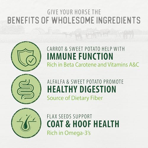 Treat your horse with Caledon Farms Harvest Biscuits – Carrot and Alfalfa Recipe, adored by both horses and their owners. With just 6 simple, all-natural ingredients, these biscuits are free from artificial additives, colors, and preservatives, so you know exactly what you’re feeding your horse. Molasses-free with no grains or sugar added, these crunchy biscuits are low in starch, with only naturally occurring sugars from the wholesome ingredients. Our Harvest Biscuits are thoughtfully crafted to support your horse’s overall wellbeing. These biscuits loaded with sweet potato and carrot, both rich in beta-carotene for immune health and vision support, as well as vitamin C, a powerful antioxidant. The inclusion of alfalfa, a nutrient-rich forage, provides calcium to help maintain a healthy digestive pH balance and is an excellent source of highly digestible protein. Both sweet potato and alfalfa are also high in dietary fiber, further supporting healthy digestion. The recipe also contains flaxseeds which are known for being a great source of omega-3 fatty acids and promoting healthy skin, a shiny coat, and strong hooves. Perfectly shaped for easy feeding, these biscuits are more than just a treat—they’re a way to bond with your horse while providing them with the nutrition they deserve. Led by a family of animal lovers since 2006, each treat is crafted with love by passionate people who pour their heart and soul into every batch. Proudly made in our own Canadian facility, we ensure the best quality and pure bliss in every single bite. Give your horse the best with Caledon Farms Harvest Biscuits and strengthen the natural bond you share. Caledon Farms – Real Bonds Grow Here™