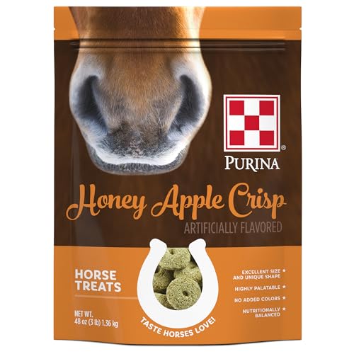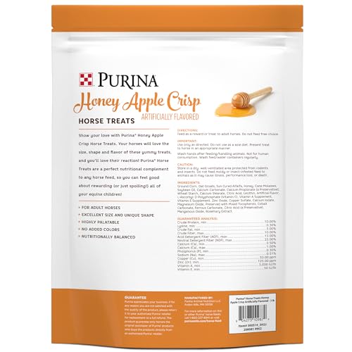 Show your love with Purina Honey Apple Crisp Horse Treats. Your horses will love the size, shape and flavor of these yummy treats, and you’ll love their reaction! Purina Horse Treats are a perfect nutritional complement to any horse feed, so you can feel good about rewarding (or just spoiling!) all of your equine children!