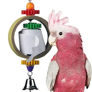 Super Bird Creations SB628 Tape Dispenser Bird Toy – Cardboard Bagel with Machine Paper, Chewable & Shredding Components, Sensory Bell, African Greys Parrots Small Cockatoos, Large Bird Size 14″x5″