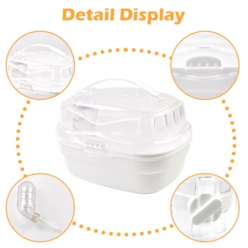 Hamster Carrier Cage with Water Bottle,Portable Hamsters Travel Cage Plastic Guinea Pig Carrying Cases Small Animal Carry Cage for Dwarf Hamsters Chinchillas Hedgehog Mouse(White)