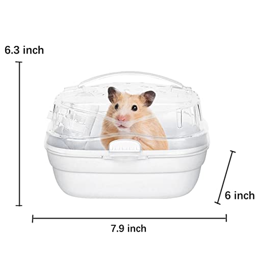 KAMEIOU White Travel Portable Small Animals Hamster Hedgehog Guinea Pig Carrier Cage for Hamsters Hedgehogs Ferret Guinea Pig Carrier Cage with Handle Breathable Transparent Lid Small Animal Carriers