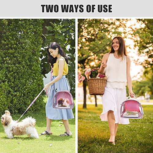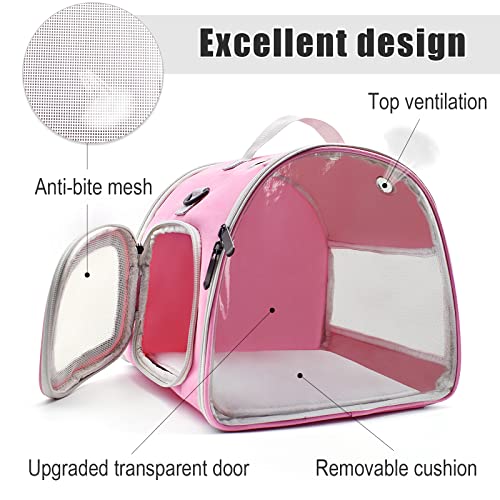 Small Animal Carrier Bag, Upgraded Portable Guinea Pig Carriers, Transparent Hamster Carrying Case, Reptile Rat Rabbit Bearded Dragon Hedgehog Carrier Bag for Travel, Hiking, Walking, Outdoor (Pink)