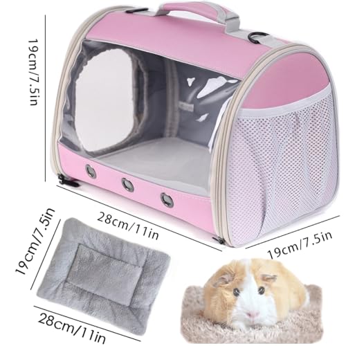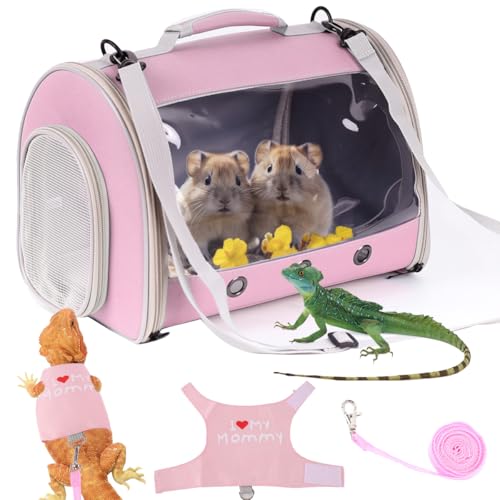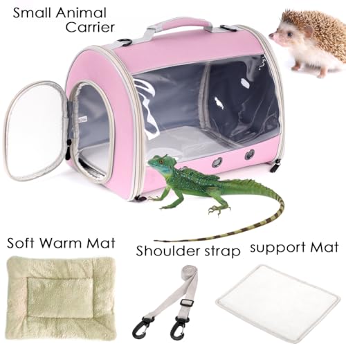 Small Animal Travel Backpack Carrier,Portable Bearded Dragon Bag for Sugar Glider,Hedgehog,Rat,Bunny,Rat,Outdoor Used (Pink, Carrier L+ I Leash)