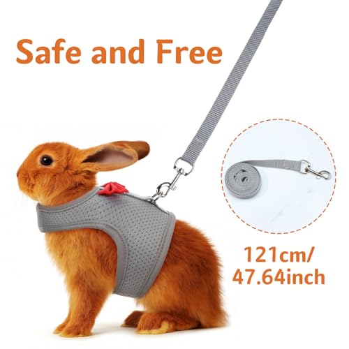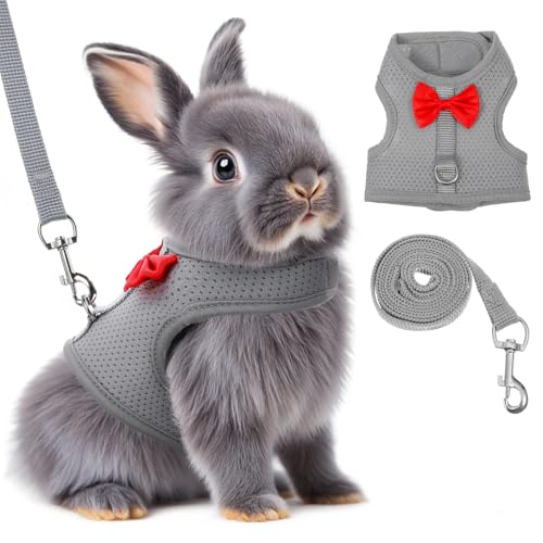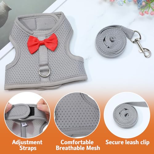 Bunny Harness and Leash Set, Soft Breathable Mesh Rabbit Leash Vest with Safety Buckles, Lightweight Escape-Proof Walking Gear for Rabbits, Kittens, Ferrets, Guinea Pigs, Grey M