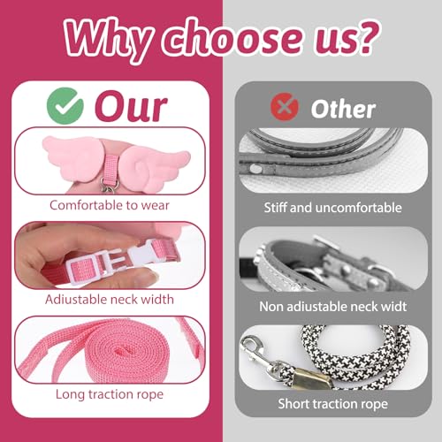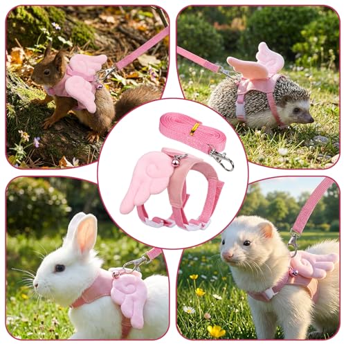 【Cute Design】Our guinea pig harness is an adorable style with pink angel wings that makes pets appear more lively and eye-catching when worn. Our ferret toys features fresh colors and outstanding appearance suitable for pet daily dressing and photography scenarios.