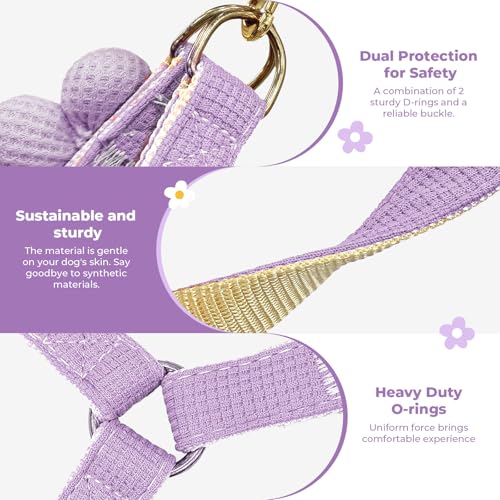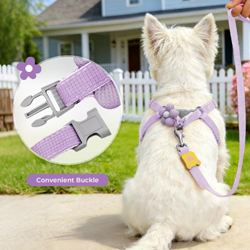 Charming Floral Theme – Elevate your walks with this charming small dog harness and leash set, featuring a blooming flower on the harness and a bow on the matching leash. Available in six vibrant colors inspired by nature—Fresh White, Lavender Purple, Cherry Pink, Meadow Green, Sky Blue, and Sunny Yellow—this cute dog harness brings a touch of floral elegance to every adventure. As the ideal dog harness for small dogs, ensuring your furry companion looks adorable and stylish wherever you go