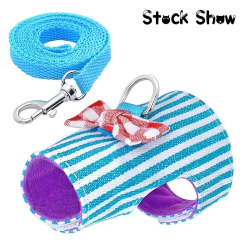 Stock Show Small Pet Outdoor Walking Harness Vest and Leash Set with Cute Bowknot Decor Chest Strap Harness for Rat Ferret Hamster Squirrel Clothes Accessory, Blue Stripe
