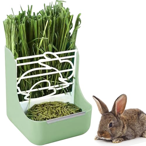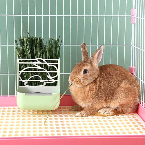 GKYZBB Rabbit Feeder, Hay Food Bin Feeder, Adjustable,Removable Grass Rack, Stainless Steel Edge, for Rabbit, Guinea Pig, Chinchilla (Green)