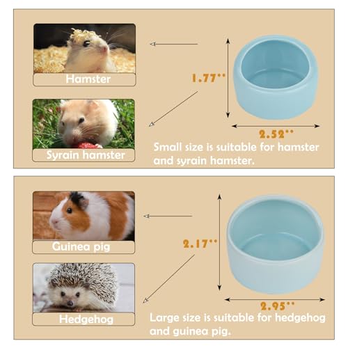 Ceramic hamster food bowl – This guinea pig food bowl is made of food-grade ceramic, safe and reliable for your pets to use. The thick material is sturdy and not chewable, ensuring the durability and offering you a long-lasting chinchilla food dish. And this hamster food bowl is dishwasher safe, convenient for you to clean. We also offer a safe packaging, ensuring the products will be delivered to you in a perfect condition.