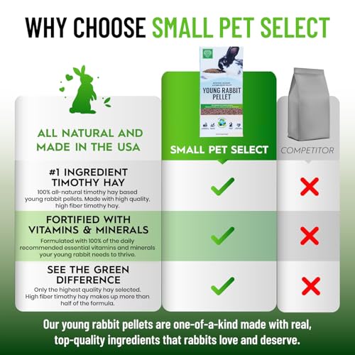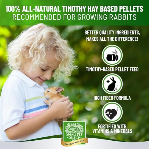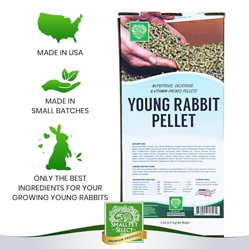 Small Pet Select Young Rabbit Pellet Food, Pellets, Treats for Bunny Rabbits High Fiber Timothy Hay Based Formula, 5lb