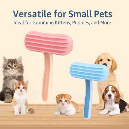 2 Pack Bunny and Chinchilla Grooming Brush – Soft Silicone De-Shedding Bath & Massage Comb for Rabbits, Guinea Pigs, Small Pets, Cats, Dogs, Kittens & Puppies