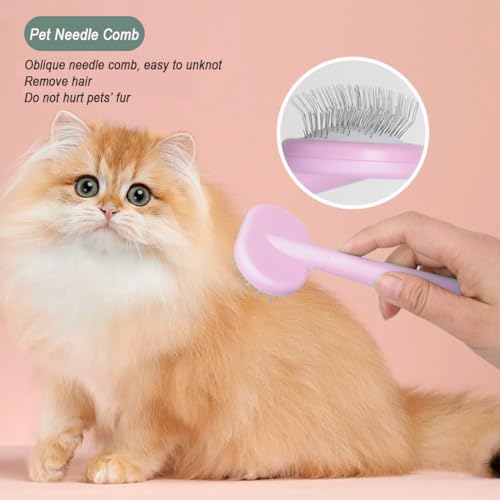 5PCS Small Pet Brush Grooming Kit, Cat Dogs Brushes for indoor Cats with Cat Nail Clipper & Nail File,Self Cleaning Slicker Brush for Dogs & Cats (PINK)
