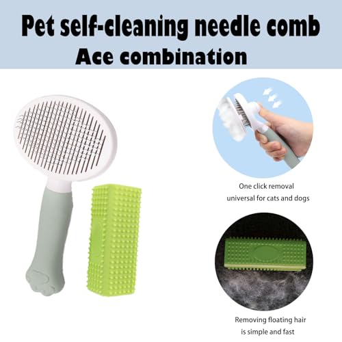 Dog Brush Kit for Grooming Short & Long Haired Dogs & Cats, Pet Grooming Set for Small Animals, Puppy Self-Cleaning Slicker Brush and Pet Comb for Shedding Medium & Large Dogs