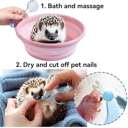 JSLZF Hedgehog Bath Supplies Grooming Kit: Foldable Bathtub, Nail Clippers, Bathing Brushes, Towel for Hedgehog Small Pets like Guinea Pigs