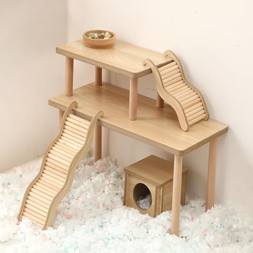 (2-Piece Set) Hamster Game Wooden Platform, Tunnel Ladder Hidden Area Platform with Wooden Support Columns, Toy cage Accessories for Hamster Squirrels and Other Small Pets