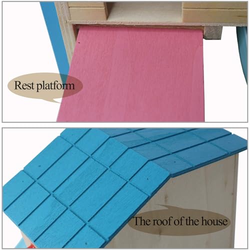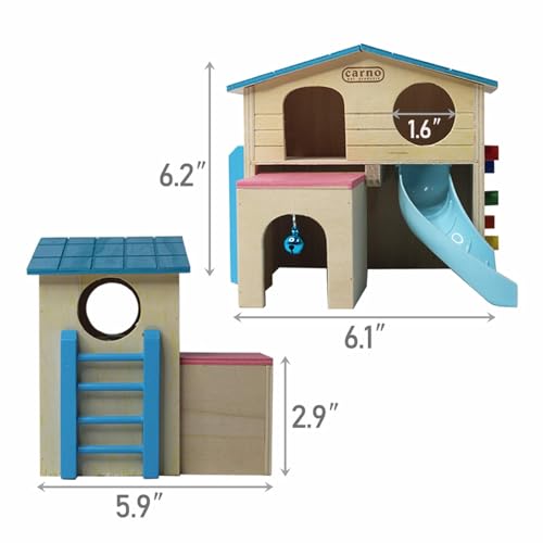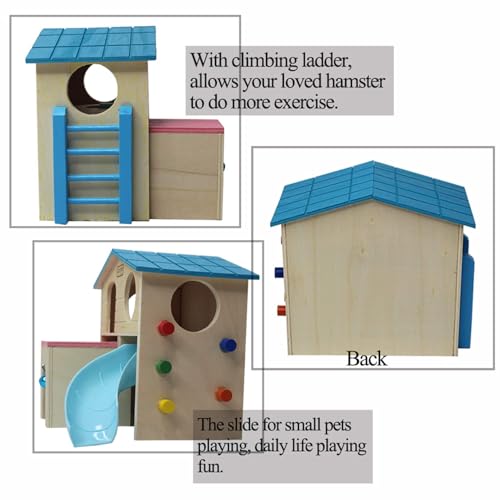 kathson Hamster House Pets Small Animal Hideout with Funny Climbing Ladder Slide Wooden Hut Play Toys Chews for Small Animals Like Dwarf Hamster and Mouse(Blue)